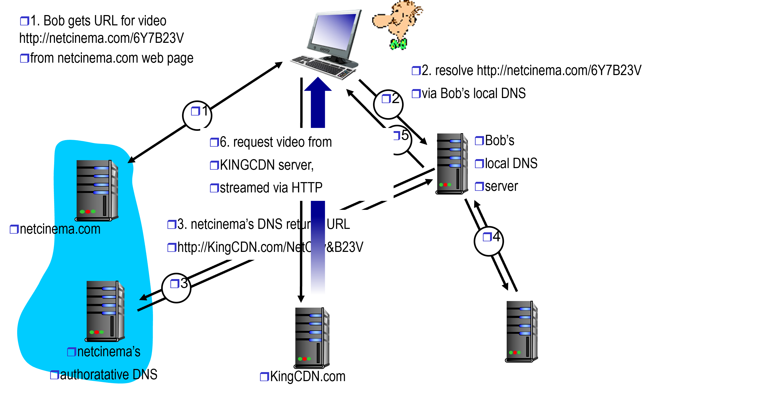 CDN的部署遵循集群选择策略,动态地将用户定向到CDN中地某个数据中心地机制;可以是基于地理的,或者基于流量的;
