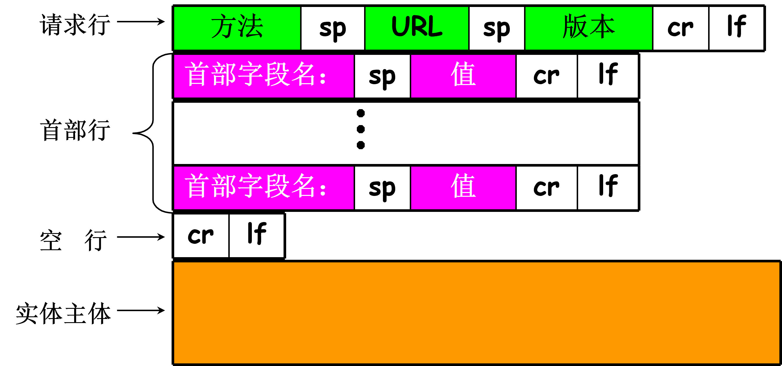 - 头部字段 (header line):零行或多行键值对,提供关于报文的元数据,例如主机、内容类型、长度等。