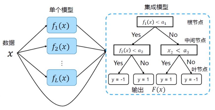 树模型:用决策树作为集成模型,根据和函数的值进行结点拆分