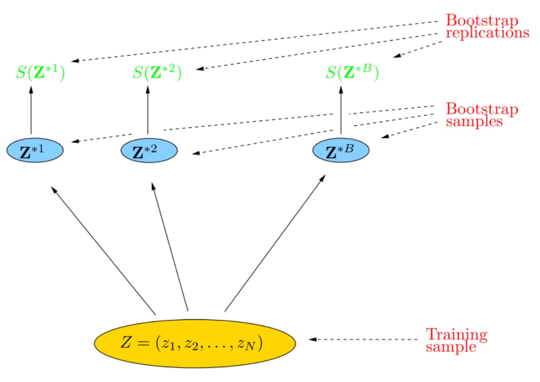 由于数据实例在自举采样数据集出现的概率约为0.632;直接在训练集上验证,大概率会过拟合; 因此提出留一自举法(leave-one-out bootstrap):构建自举复制集时不采样实例,然后利用这个实例评估模型