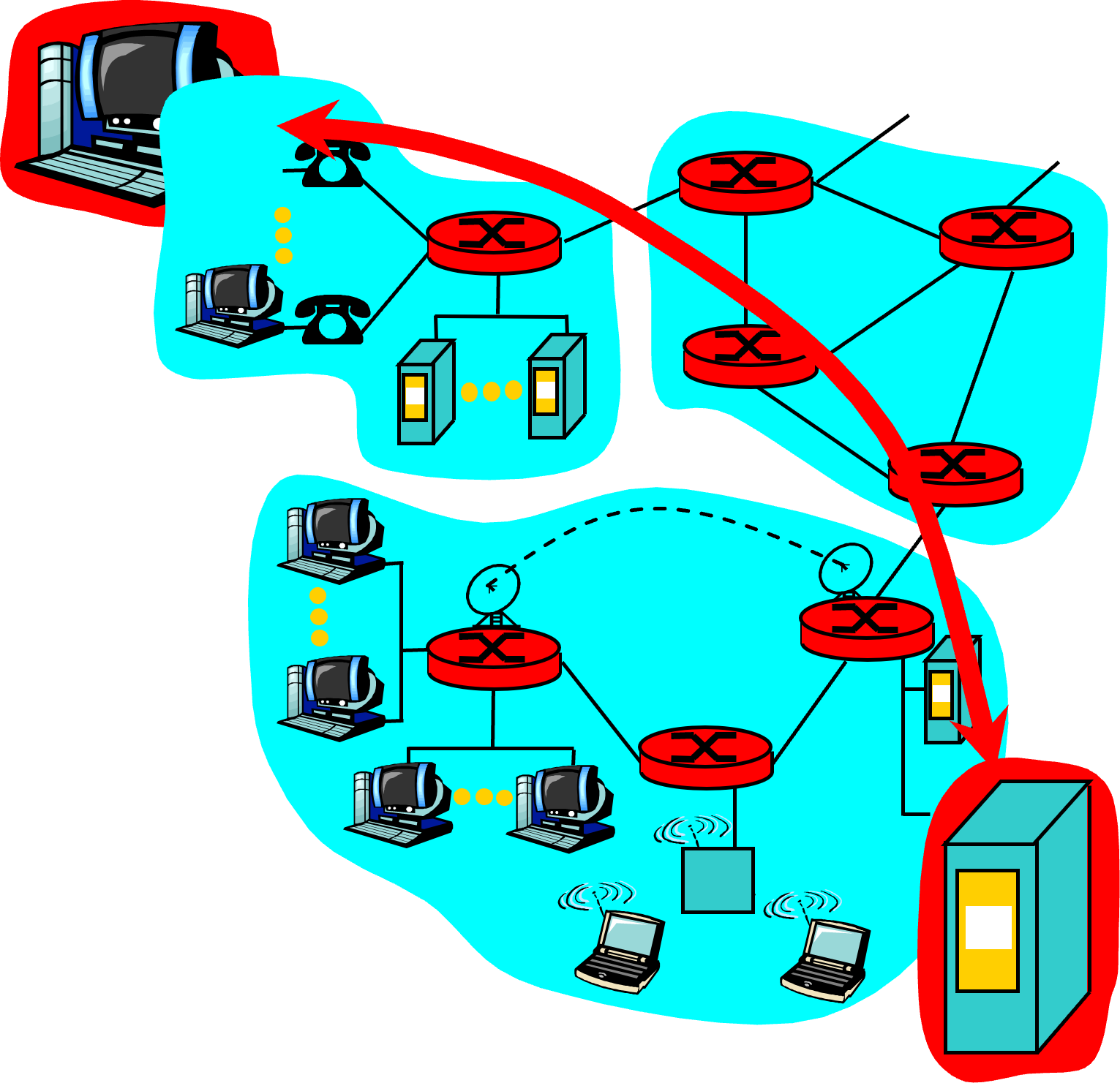 因此可以理解为相互连接的路由器;它们通过电路交换和分组交换传送数据,发送报文(message);