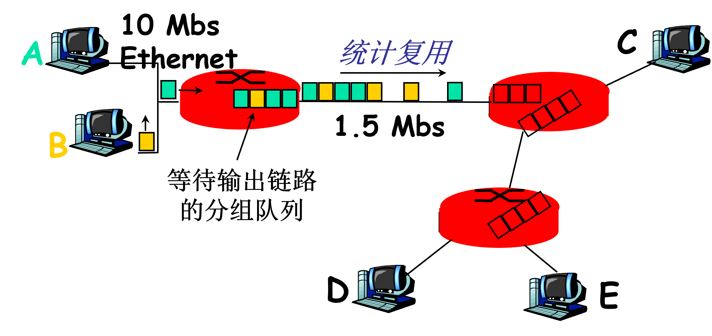 - 每个分组使用链路全部带宽,分组的传输速率总是以链路最大传输速率通过链路;